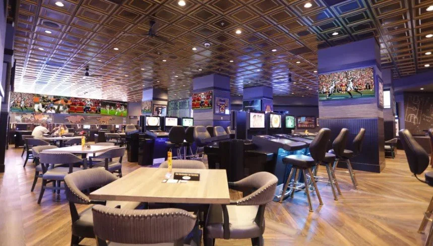 Guests at Treasure Island in Las Vegas, NV, can catch every touchdown at the Golden Circle Sportsbook, which recently doubled in size to offer room for 750 guests in a spacious 12,000 square feet. McCann Systems helped bring the space to life with industry-leading audiovisual technology, including almost 85 feet of LED ticker displays. A 380-square-foot main LED display (1.9mm pixel pitch) wraps Golden Circle like a ribbon and clocks in at over 76 feet in length. Additionally, a 22-foot continuation of the LED spans the main bar. The space has columns dotted throughout, so McCann Systems and Treasure Island strategically wrapped 65-inch displays around them so patrons won’t ever encounter a poor sightline. Almost 50 HD units can be controlled as a group or individually to provide any source of content. Finally, more than 60 betting carrels can be individually tuned to catch a race, game, or custom content. (Image credit: McCann Systems)